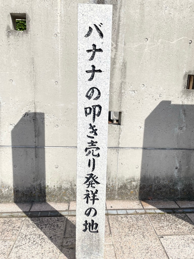 駅前の広場にこんな碑が立っていました!関門トンネル入口のエレベーターのバナナの絵は、このことだったのか!!謎、解けました😆